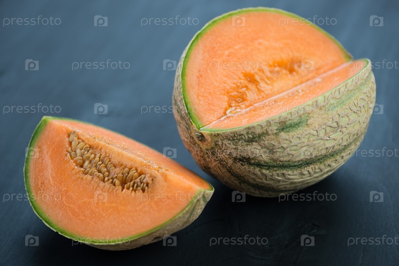 Дыня-канталупа на темном деревянном фоне
