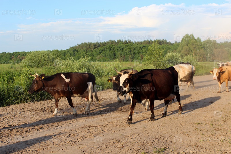 Коровы возвращаются с пастбища