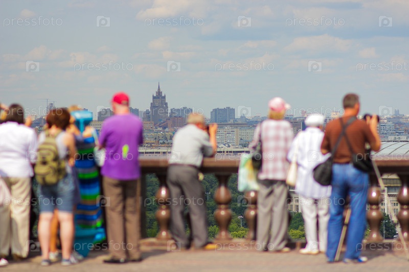 Туристы смотрят на Воробьевы горы со смотровой площадки
