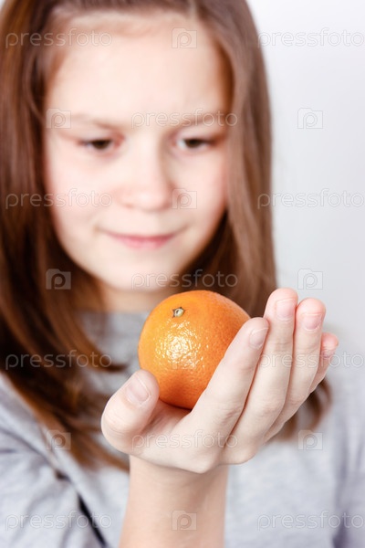 Подросток с мандарином на ладони