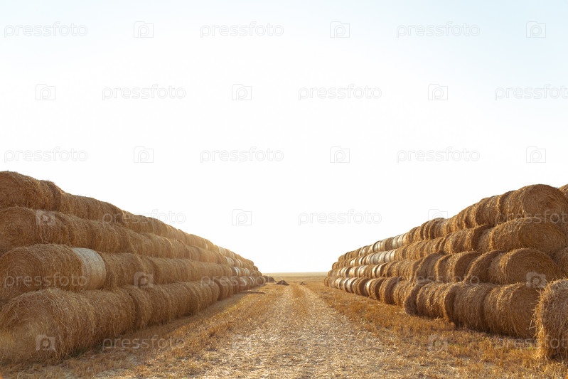 Большой стог сена на поле