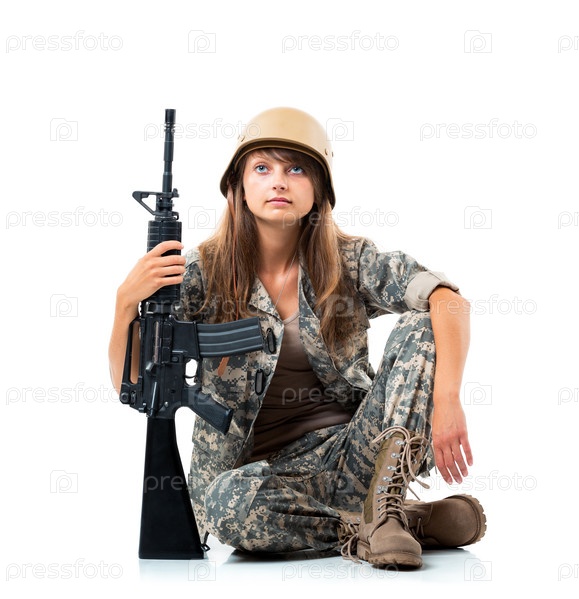 Красивая девушка в камуфляже с оружием в руке