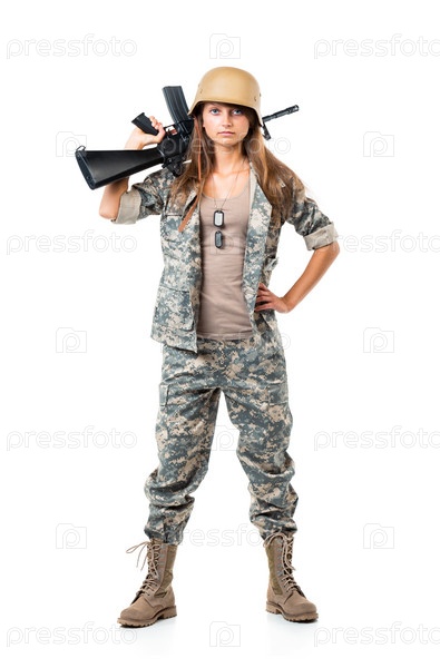 Красивая девушка в камуфляже с оружием в руке