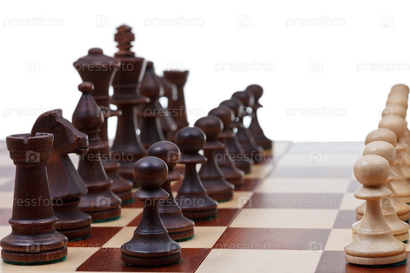 Черные шахматные фигуры и белые пешки