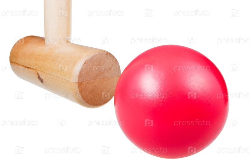 Деревянные шарик и молоток для крокета