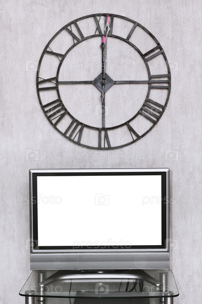 Настенные часы с пустым белым экраном телевизора