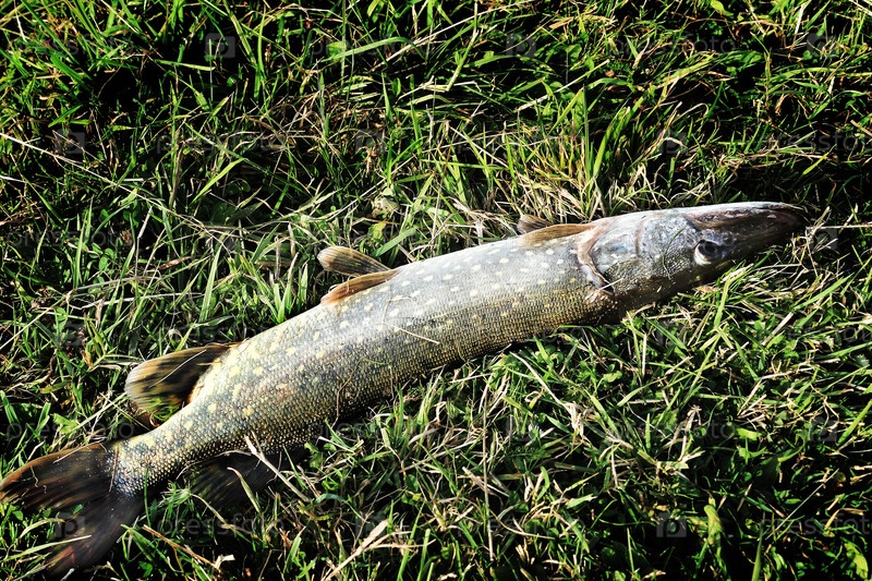 Щука на зеленой траве