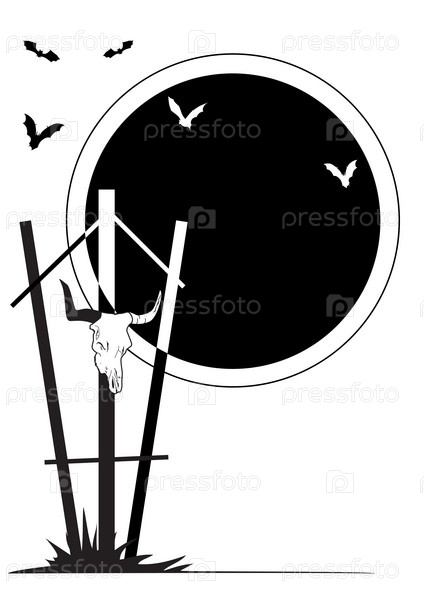 Хэллоуин, иллюстрация с черепом быка и летучими мышами