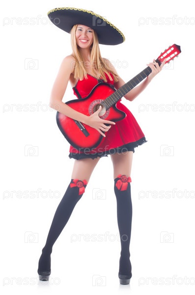 Женщина в сомбреро с гитарой