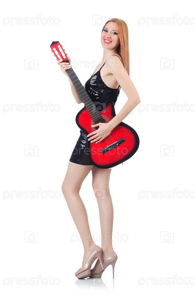 Гитаристка, изолированная на белом