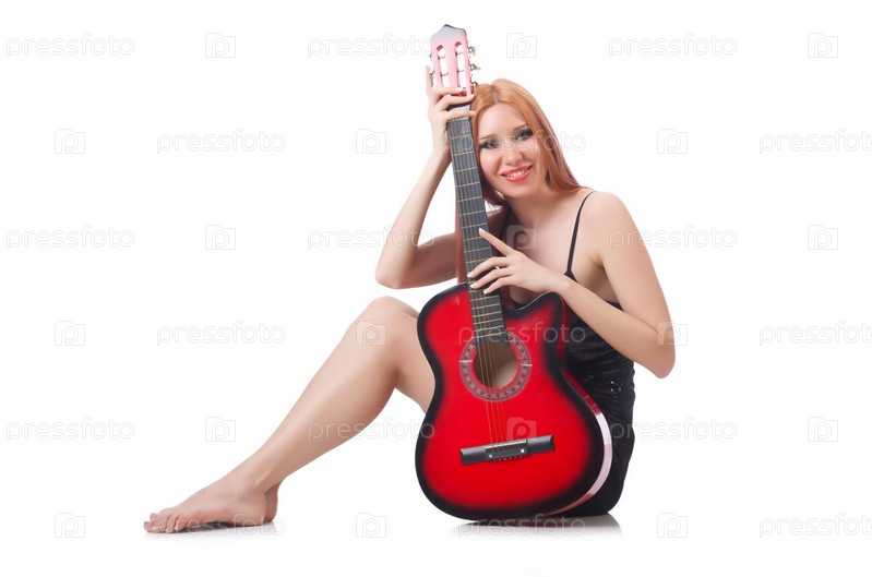 Гитаристка, изолированная на белом