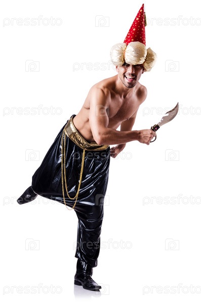 Пират с кинжалом, изолированный на белом