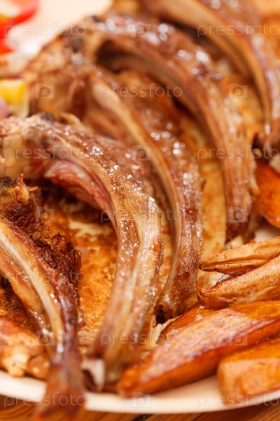Приготовленные на гриле ребра с овощами