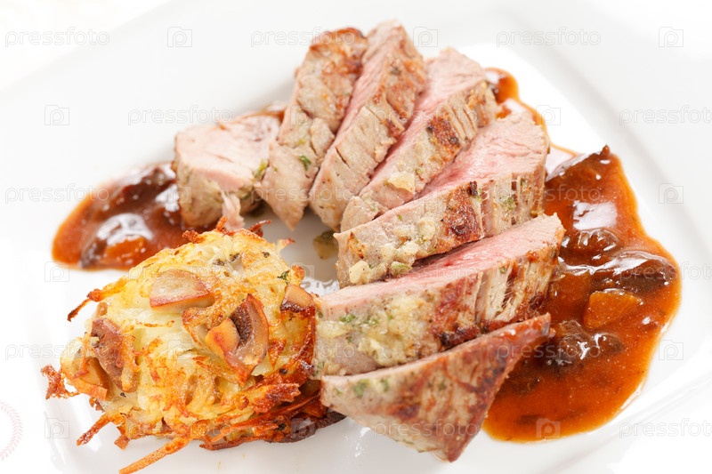 Мясо с овощными блинами