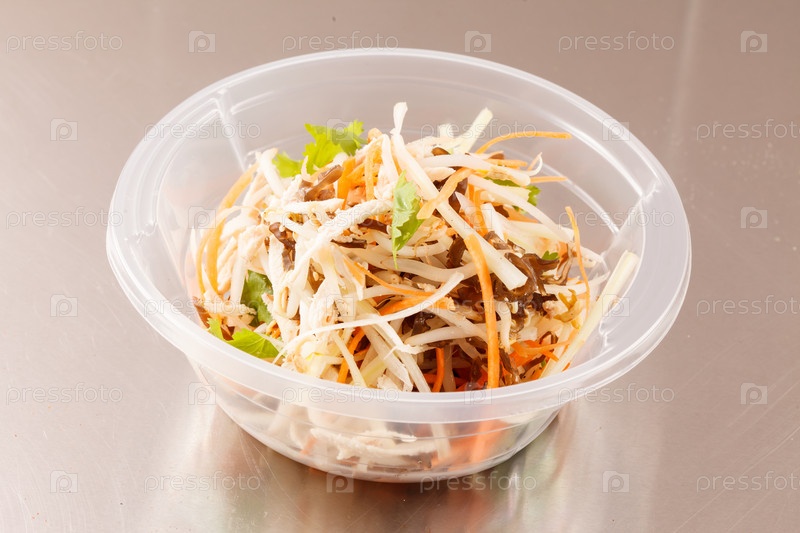 Салат с курицей в миске