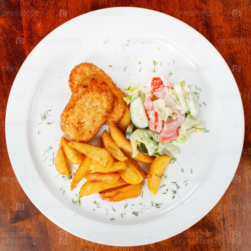 Куриные котлеты с жареным картофелем