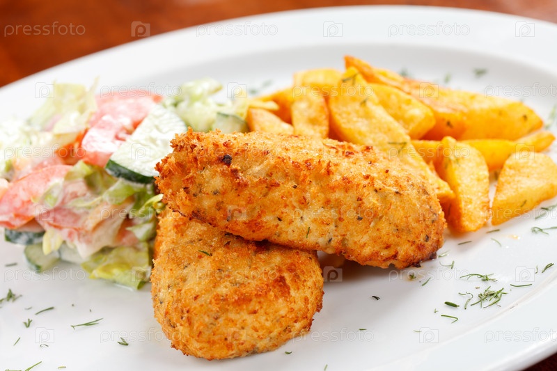 Куриные котлеты с жареным картофелем
