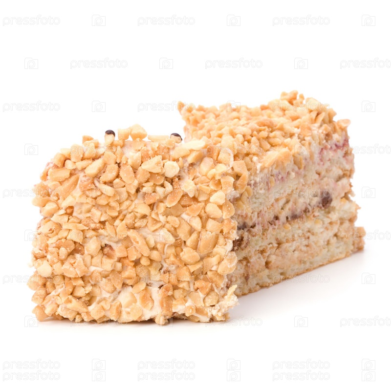 Кусочек торта с кремом, изолированный на белом фоне