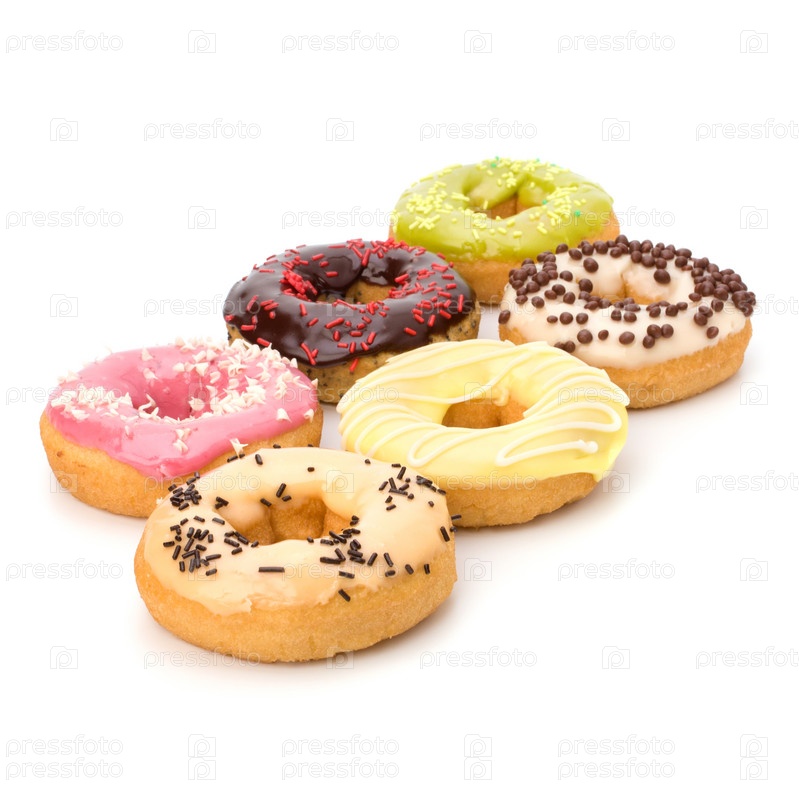 Вкусные пончики, изолированные на белом фоне