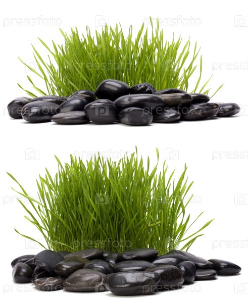 Трава и камни, изолированные на белом фоне