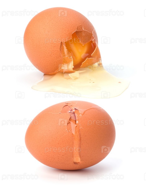 Разбитое яйцо, изолированное на белом фоне