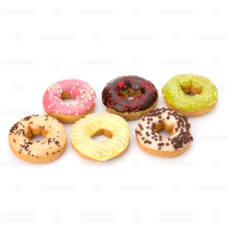 Вкусные пончики на белом фоне