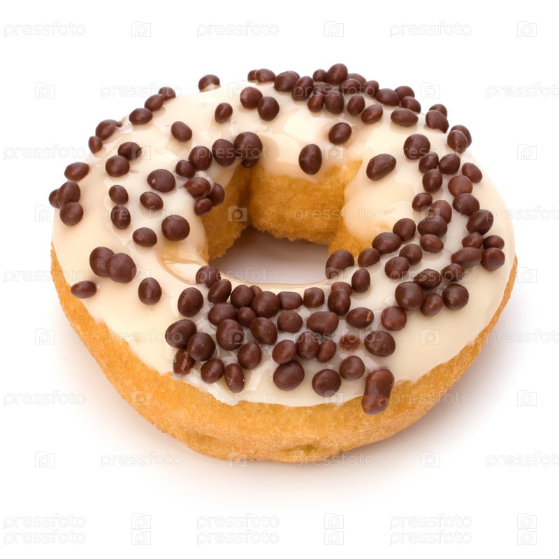 Вкусный пончик на белом фоне