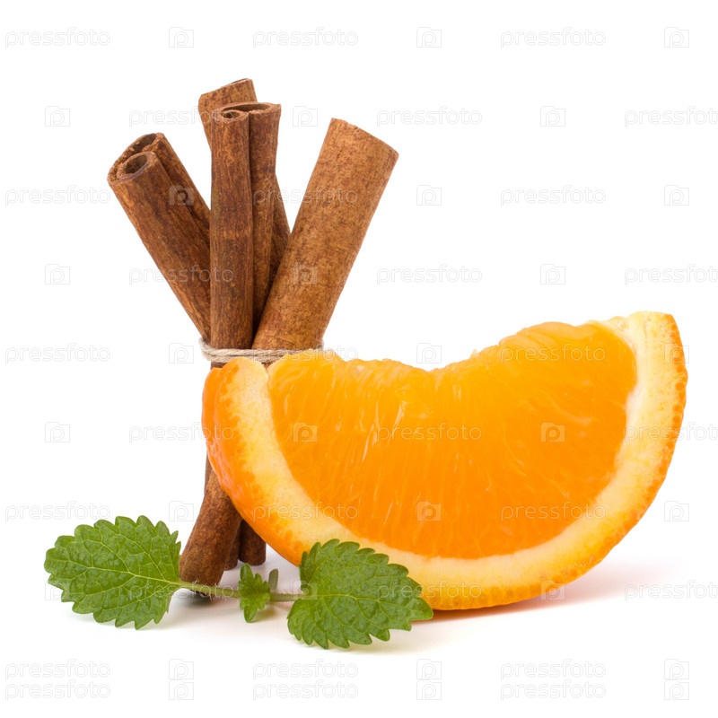 Долька апельсина, корица и мяты. Ингредиенты для горячих напитков