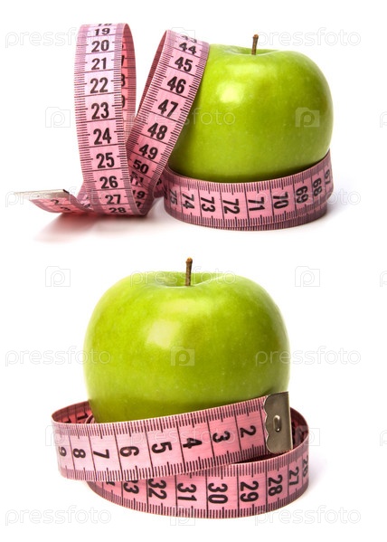 Сантиметровая лента вокруг яблока на белом фоне