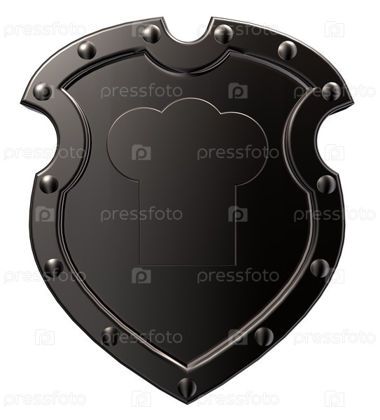 Металлический щит с символом кулинарной шляпы. 3d иллюстрация