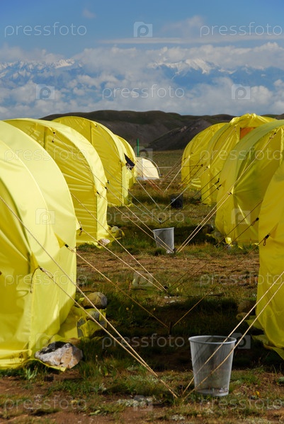 Ряды палаток в базовом лагере
