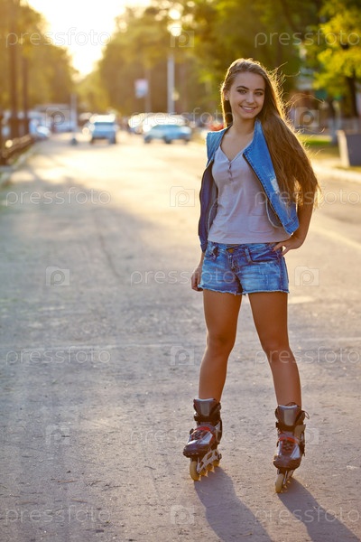 Женщина катается на роликах на закате