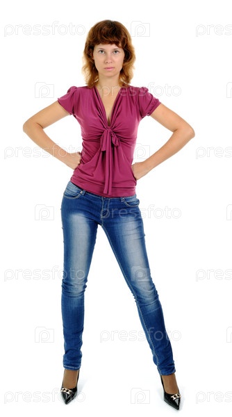 Девушка в джинсах, изолированная на белом фоне
