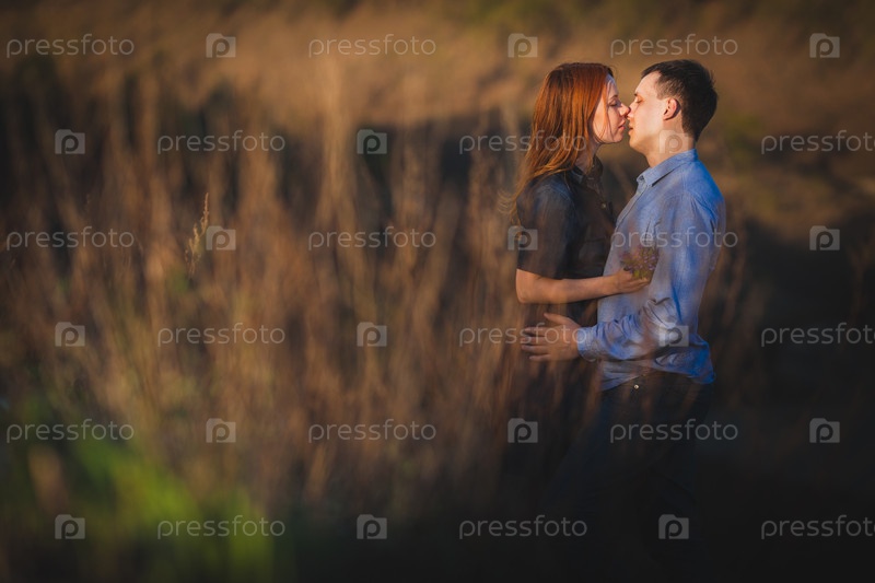 Целующаяся пара стоит среди кустарников