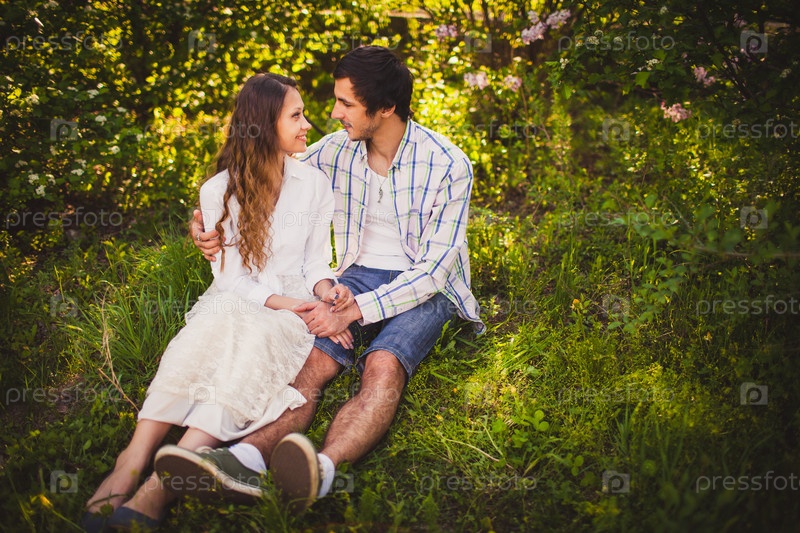 Влюбленные сидят в летнем парке