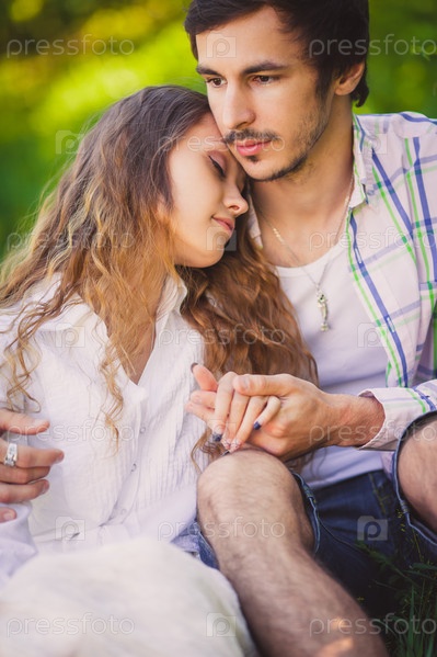Влюбленные сидят в летнем парке