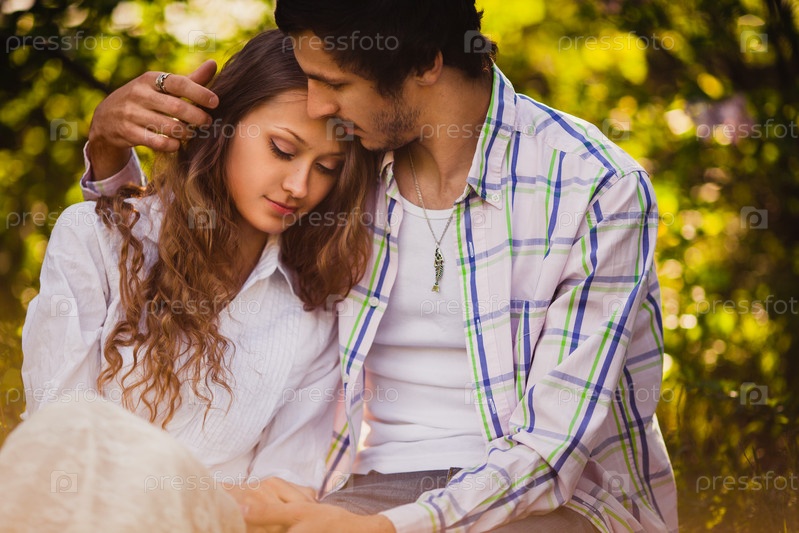 Влюбленные сидят в летнем парке