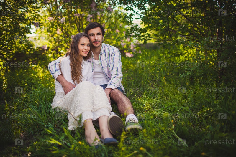 Влюбленные сидят в летнем парке