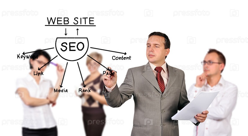 Бизнесмен рисует схему SEO