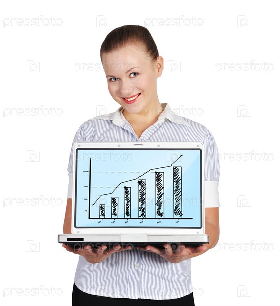 Девушка держит ноутбук с графиком
