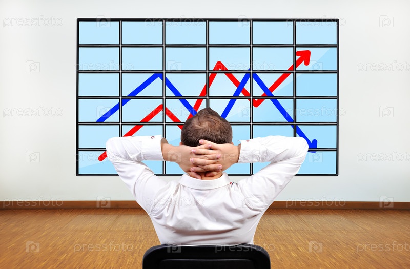 Бизнесмен смотрит на график