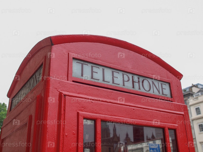 Традиционная красная телефонная будка в Лондоне, Великобритания