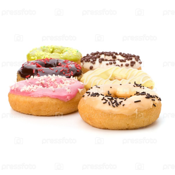 Вкусные пончики, изолированные на белом фоне