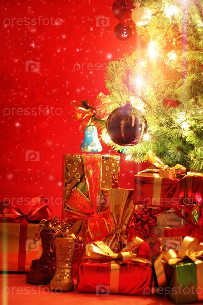 Множество новогодних подарков под елкой