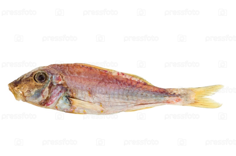 Вяленая (соленая) барабулька (красная кефаль) на белом фоне