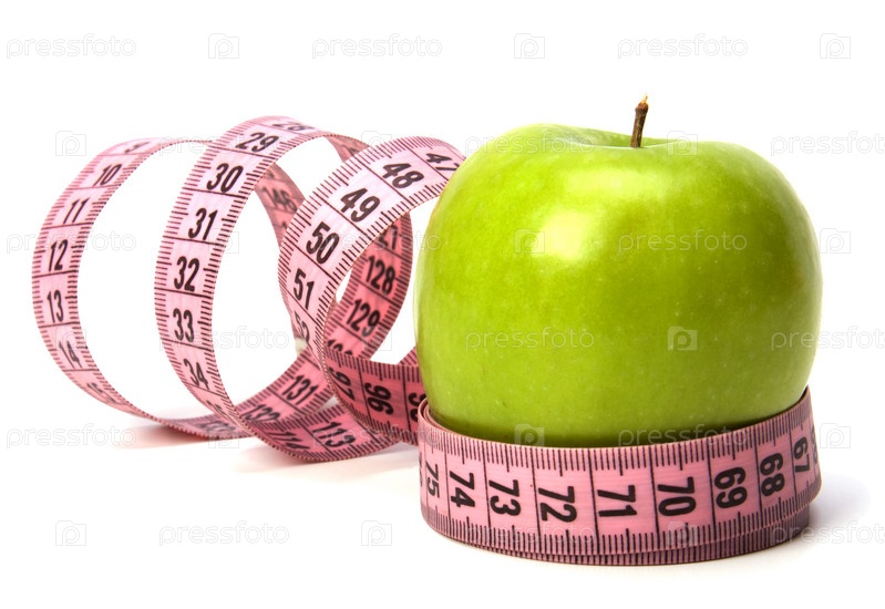 Измерительная лента вокруг яблока, изолированные на белом фоне