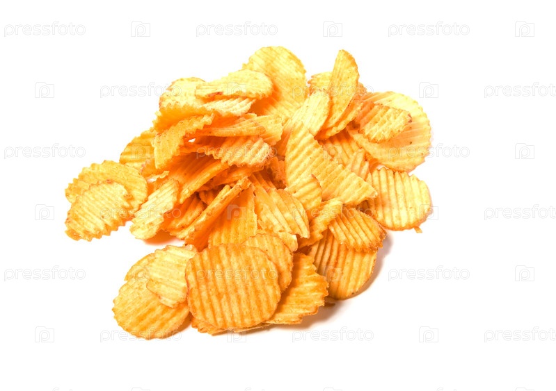 Картофельные чипсы, изолированные на белом фоне