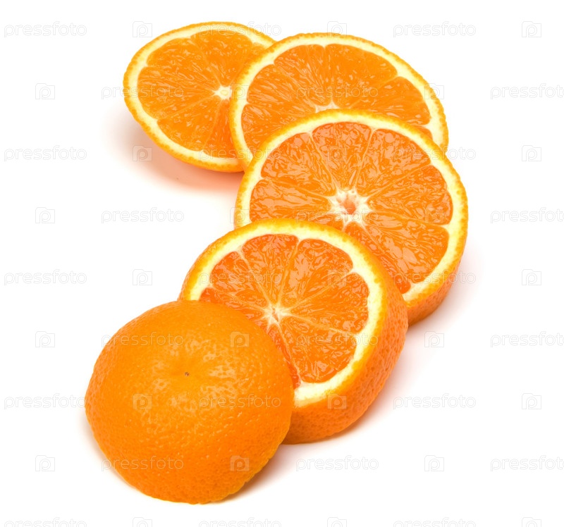 Апельсиновые дольки, изолированные на белом фоне