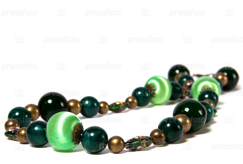 Зеленый бусы, изолированные на белом фоне