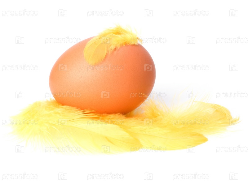 Яйцо и перо, изолированные на белом фоне. Пасхальный декор